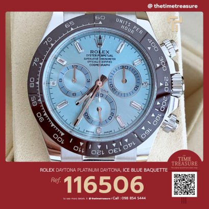 Platona, Platinum ice blue baguette/diamond dial, ceramic bezel and Oyster bracelet 40mm