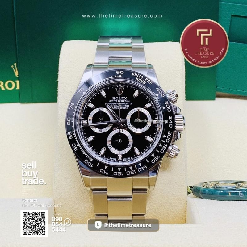 1 ในรุ่นยอดนิยม Daytona หน้าปัดดำ ขอบเซรามิค สาย Oyster Steel ทางร้านนำเสนอราคาดีๆคะ