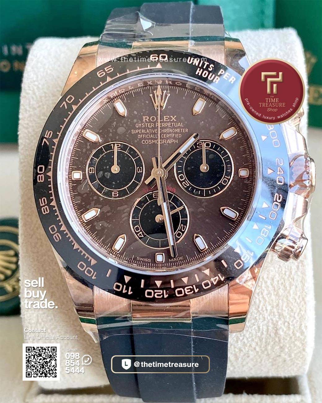 Rolex Daytona 116515ln Everose Gold Chocolate Dial Oysterflex เรือนนี้ใบลงปี 12.2021 สภาพเทียบใหม่ Very Like New 99.99% ไม่เคยใช้งาน มาแบบ อุปกรณ์ครบถ้วน